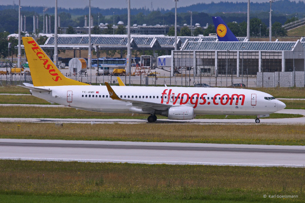 Pegasus Airlines, TC-AMP, B737-82R(W) nach der Landung in MUC aus Istanbul (SAW) 01.07.2013