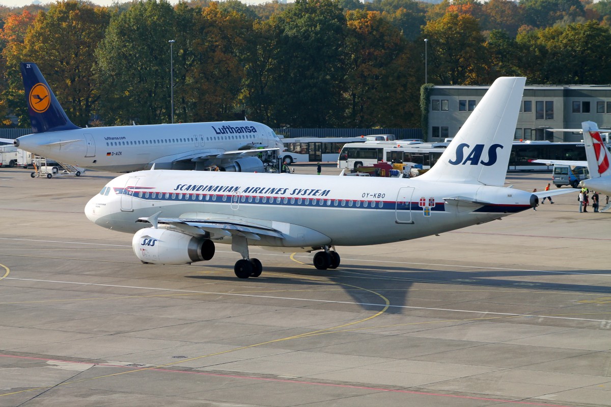SAS Scandinavian, A319-131 OY-KBO cn2850 und LH A320 D-AIZK in Berlin -Tegel im Oktober 2013.