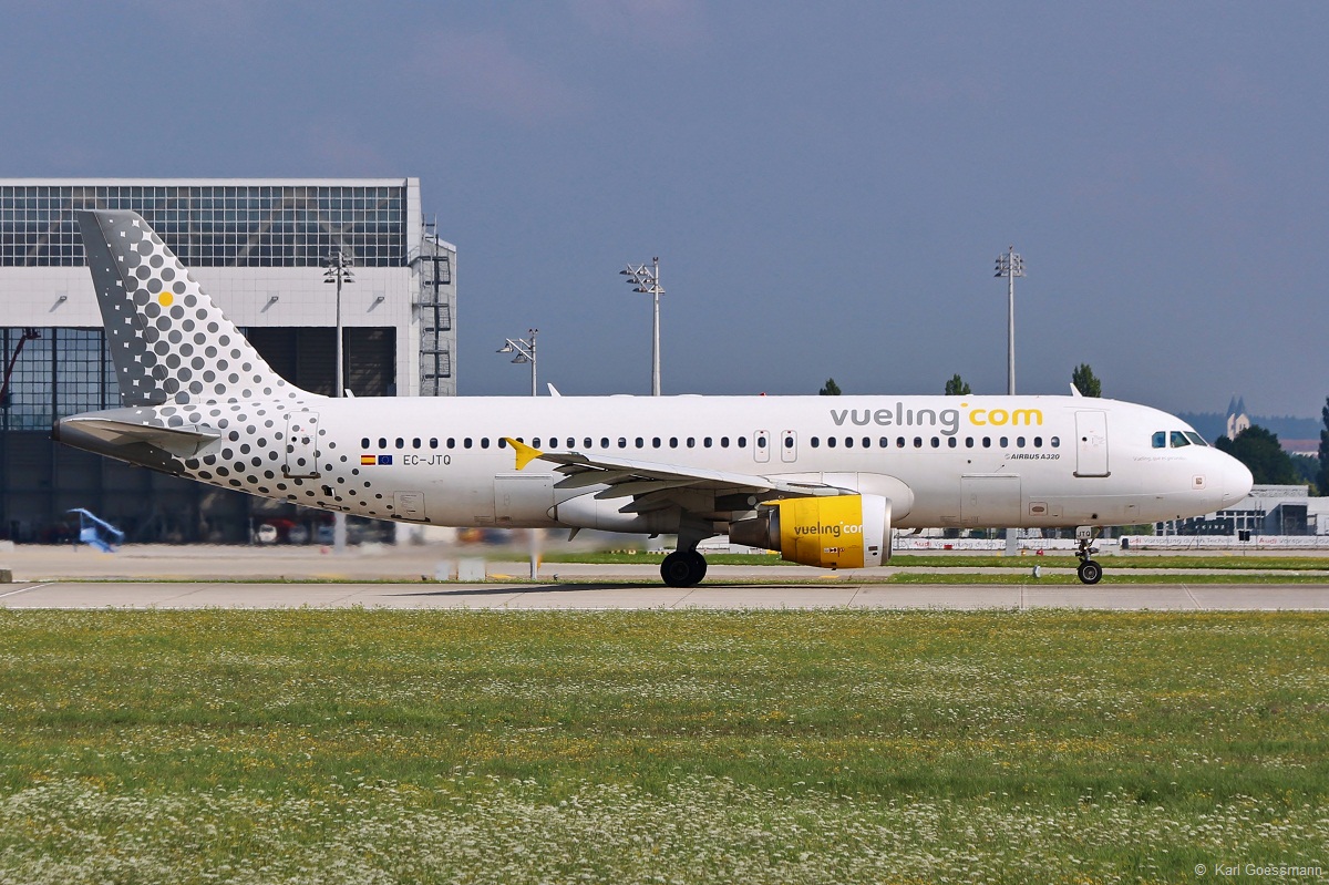 EC-JTQ  Vueling, que es gerundio!  / Vueling / A320-214 beim Start in MUC nach Barcelona (BCN) 01.08.2014