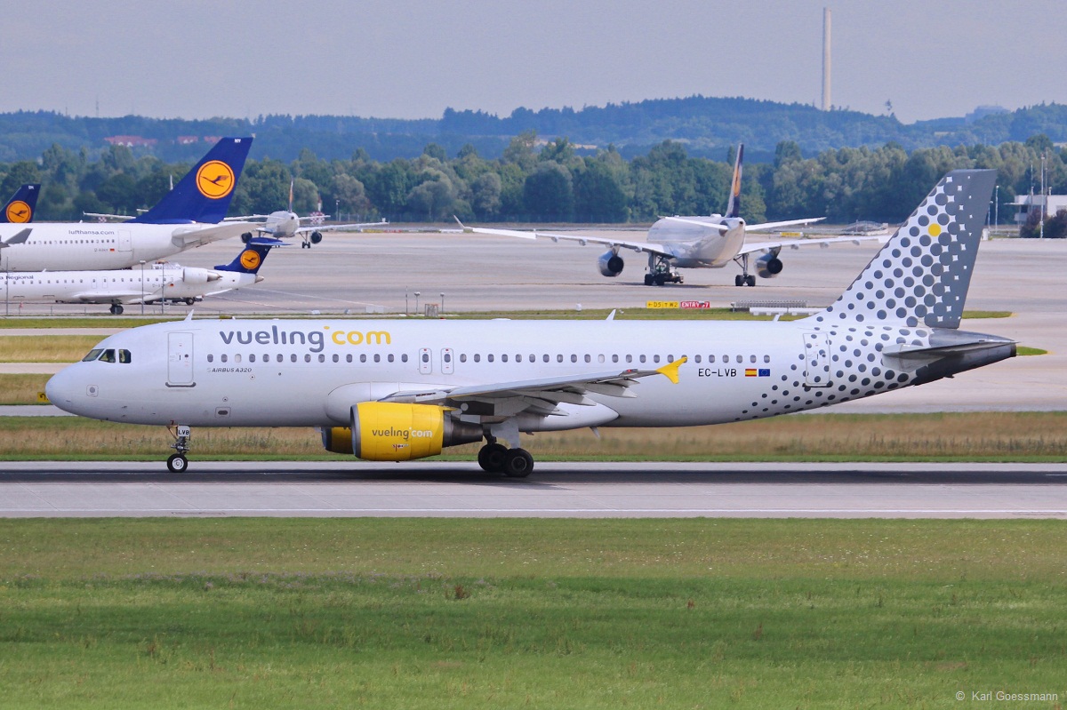 EC-LVT / Vueling / A320-232(W) vor der Landung in MUC aus Barcelona (BCN) 08.08.2014