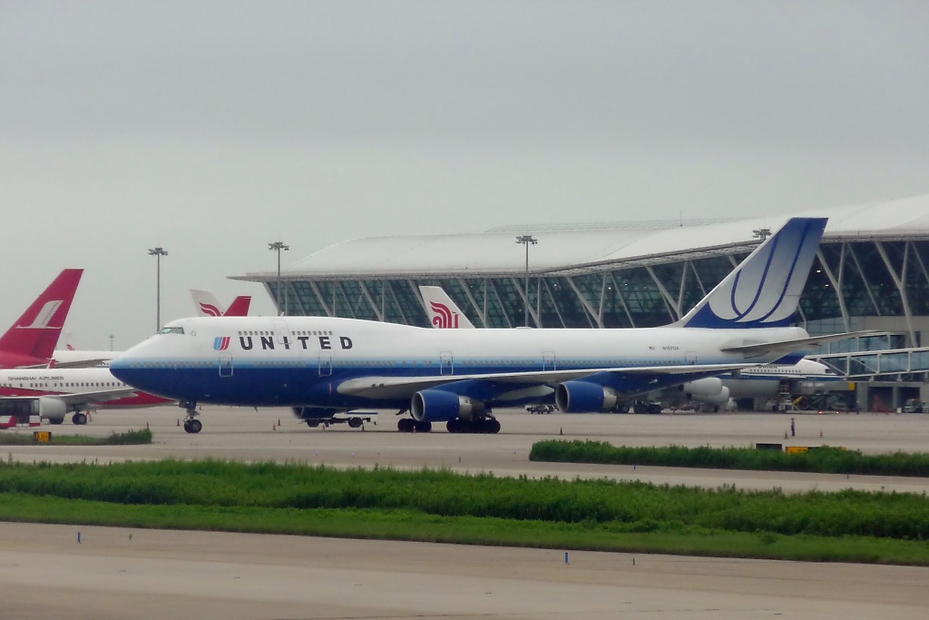 United Airlines Boeing 747-422 N107UA auf dem Flughafen Shanghai Pudong (14.7.10)