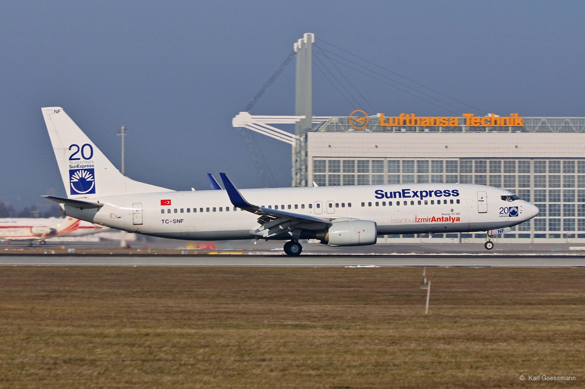 TC-SNF / SunExpress / B737-8HC(W) bei der Landung in MUC aus Izmir (ADB) 01.02.2014