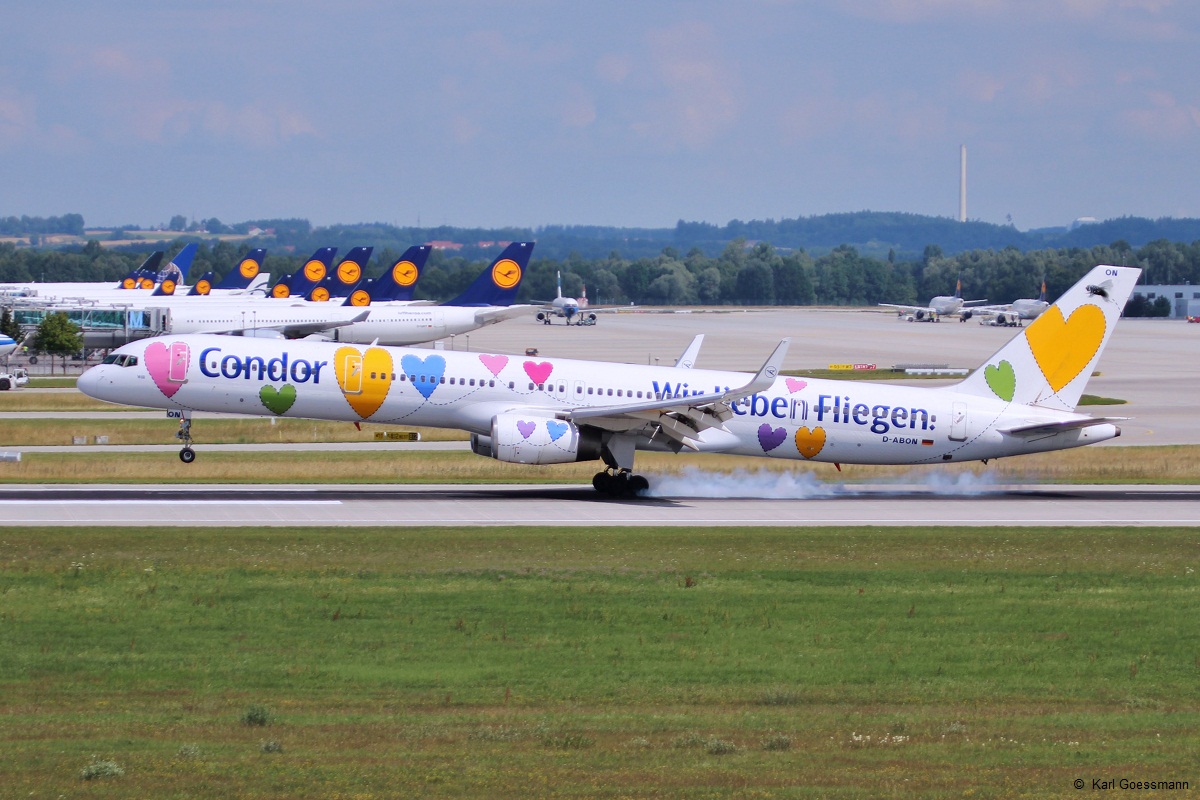 D-ABON / Condor / B757-330(W) in MUC bei der Landung aus Palma de Mallorca (PMI) 15.07.2014