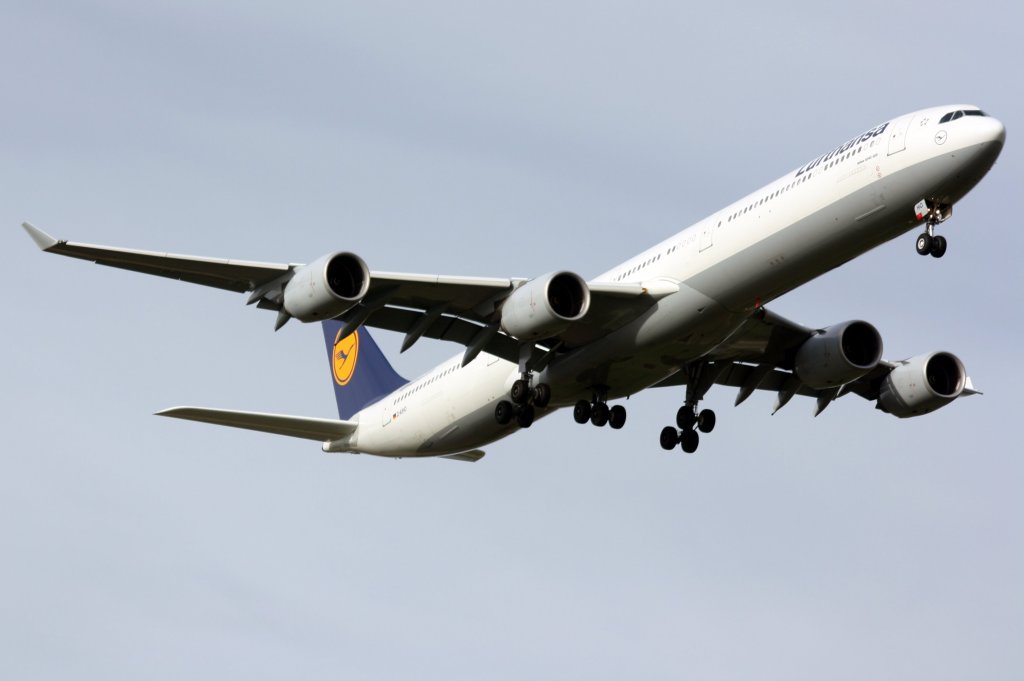 Gulf Air, A9C-LJ, Airbus A340-313X. Schöne Bemalungen zeichnen die Golfstaaten aus. Und Werbung für die Formel 1 ist auch wichtig. 31.7.2011 Jürgen Walter