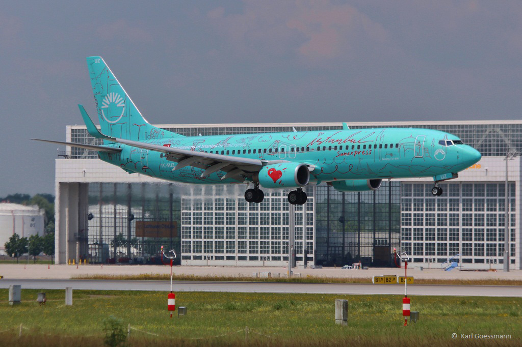SunExpress, TC-SUZ "Impressions of Istanbul", B737-8HX(W) in MUC im Anflug aus Izmir (ADB) 10.07.2013