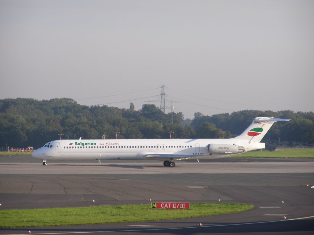 Bulgarian Air Charter MD-82 LZ-LDF beim Verlassen der 05R in DUS / EDDL / Düsseldorf am 07.10.2007
