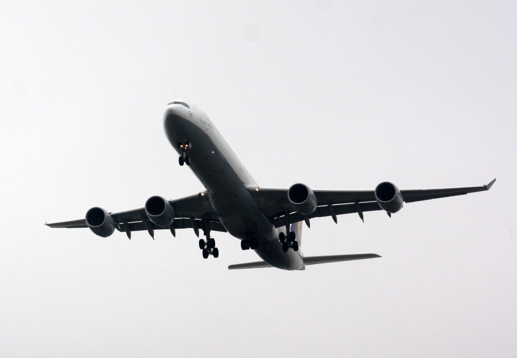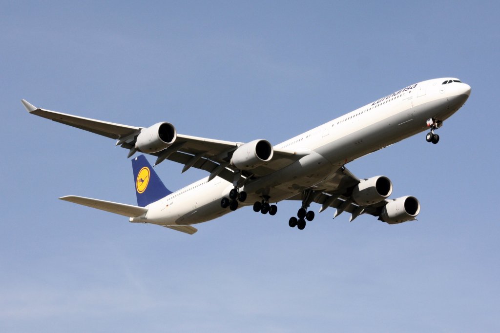 Lufthansa A 340-313X D-AIFF  Delmenhorst  beim Start in München an einem sehr trüben 10.03.2011