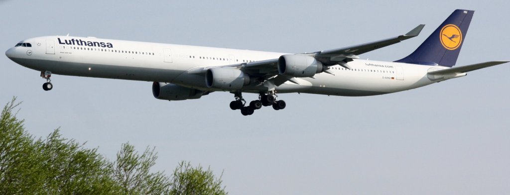 Lufthansa A 340-642 D-AIHA  Nürnberg  beim Start in München am 10.03.2011.Das Wetter wurde zum Abend etwas besser, blieb aber immer noch trüb.