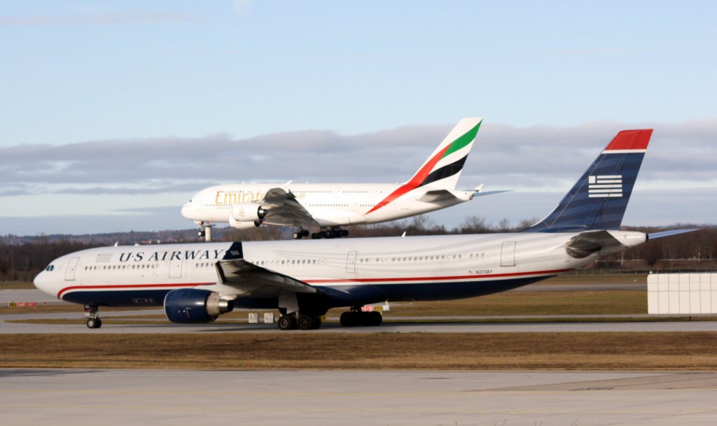 Emirates Airbus A 380-861 A6-EDQ US AIRWAYS Airbus A 330-323X N273AY Flughafen München 26.12.2011