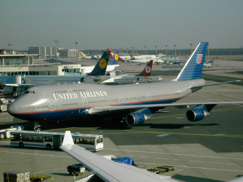 Pushback einer 747-400 von United in Frankfurt im Februar 2005
