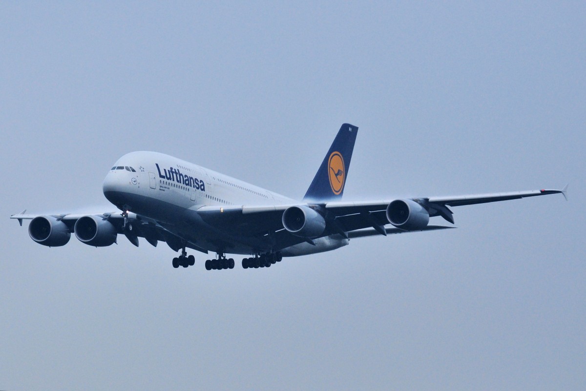LUFTHANSA AIRBUS A380-800 New York mit der Kennung D-AIMH am 26.9.2013,leider bei sehr "diesigem" Wetter im Landeanflug auf FRA L25. ferdinand baumgartner