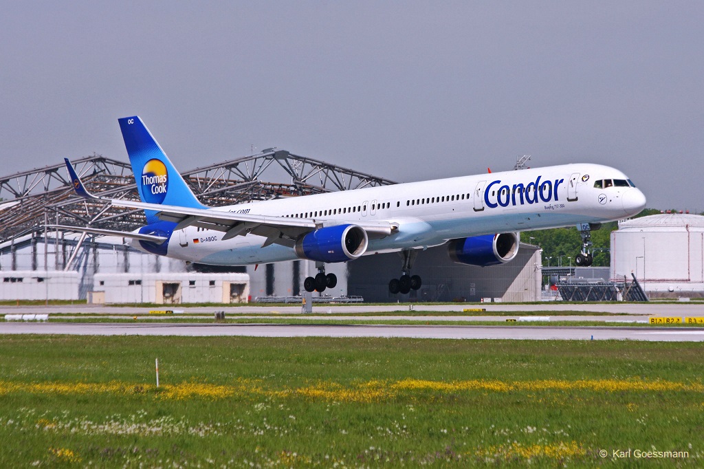 Condor, D-ABOC, B 757-330(W) bei der Landung in MUC aus Palma de Mallorca (PMI) 15.05.2013