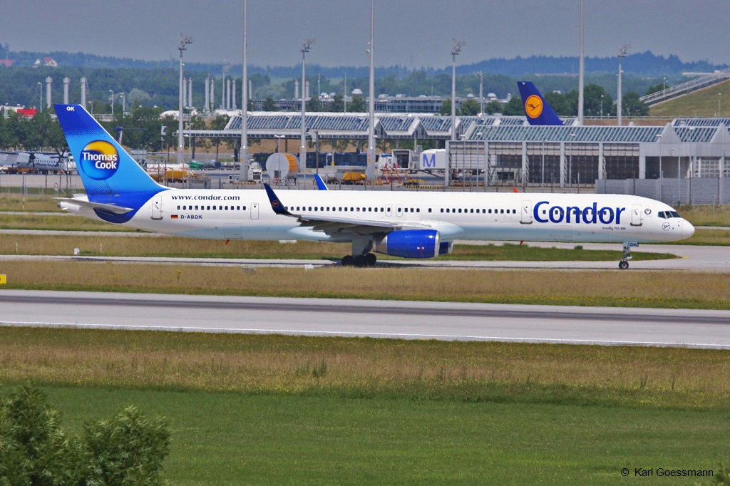 Condor, D-ABOK, B757-330(W) nach der Landung in MUC aus Palma de Mallorca (PMI) 01.07.2013