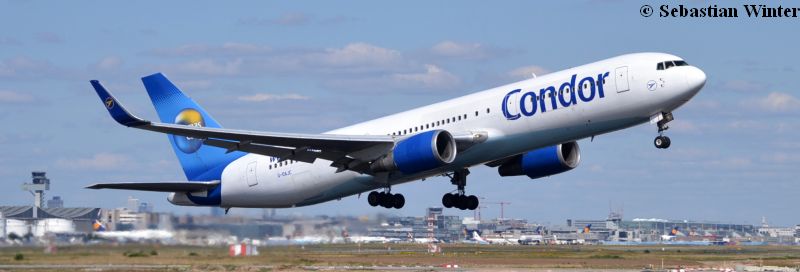 Condor B 767-330(ER) D-ABUZ bei der Landung in Frankfurt am Main am 16.08.2012