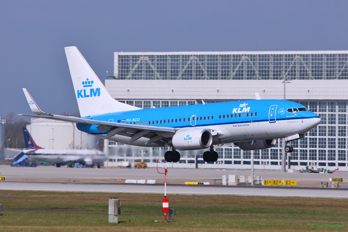PH-BGL "Tjiftjaf/Warbler" / KLM Royal Dutch / B737-7K2(W) in MUC bei der Landung aus Amsterdam (AMS) 28.03.2014