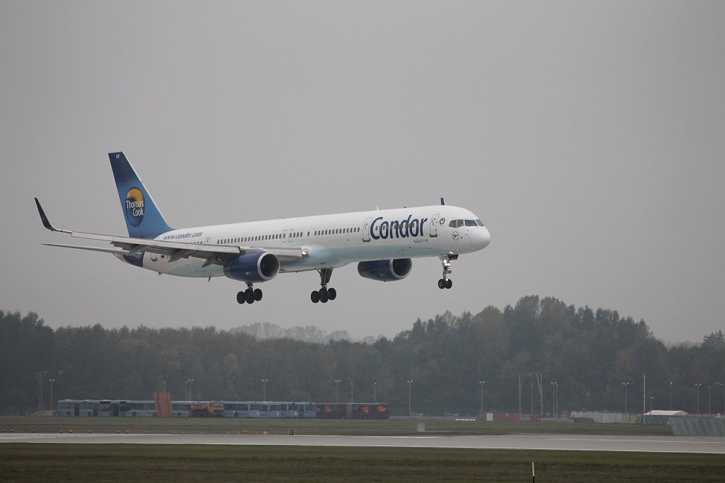 Boeing 757-300 am 21.Oktober 2012 beim Landanfluf auf dem Airport München.