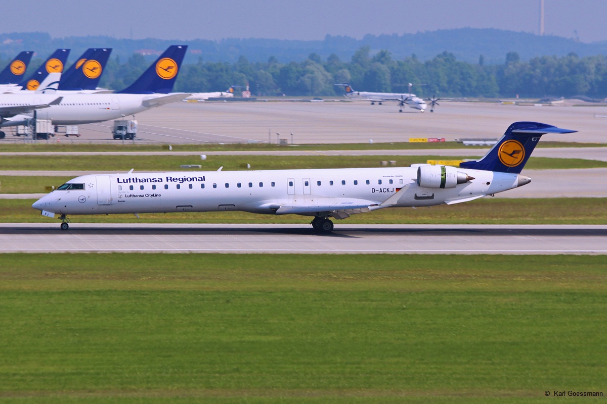 Lufthansa Regional CRJ-701ER (D-ACPM) mit dem Flug aus München bei der Landung auf dem Flughafen Leipzig/Halle. Fotografiert am 31.05.2014. Christian Geschonneck