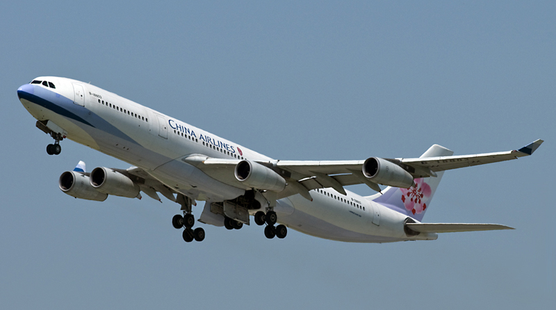A340-300 der China Airlines nach Taipeh beim Start von Rwy 11 Vienna Int. (VIE) 17.7.2009
