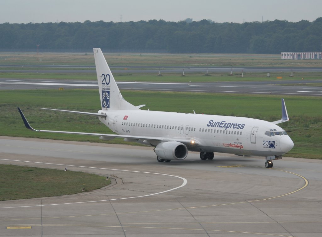 B 737-800 der  Sun Express , TC-SUU,  take off  in Düsseldorf - 07.06.2010