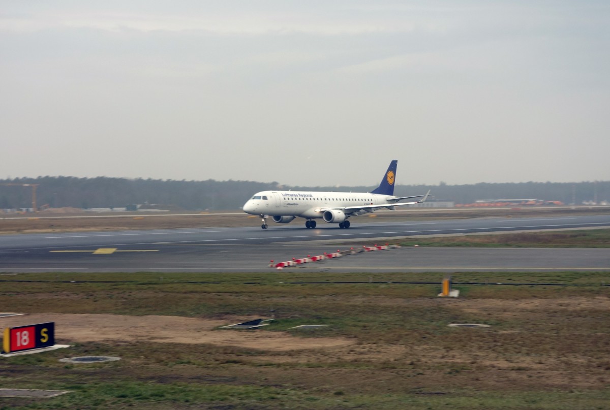 Lufthansa Embraer ERJ190-100LR (D AECF) beim Start vom Flughafen Frankfurt/ Main. 01.02.2014
