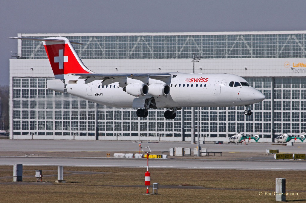 Swiss BAe Avro RJ100 überfliegt am 08.04.2013 den Bahnhof von Luxemburg und wird in kürze auf dem Flughafen Findel landen.