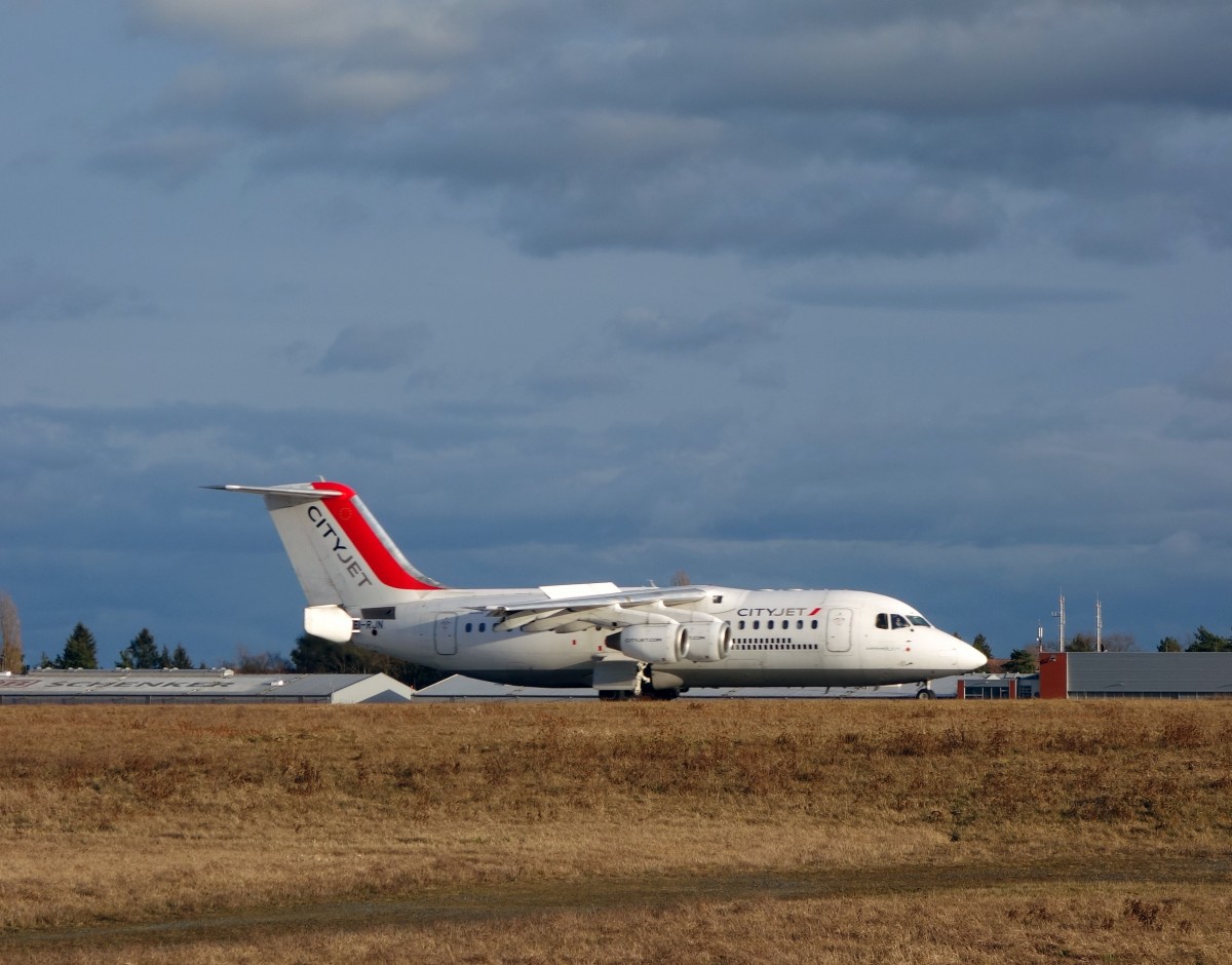 Eine British Aerospace Avro 146-RJ85 (EI RJN) von CityJet nach der Landung auf dem Flughafen Dresden. 16.02.2014