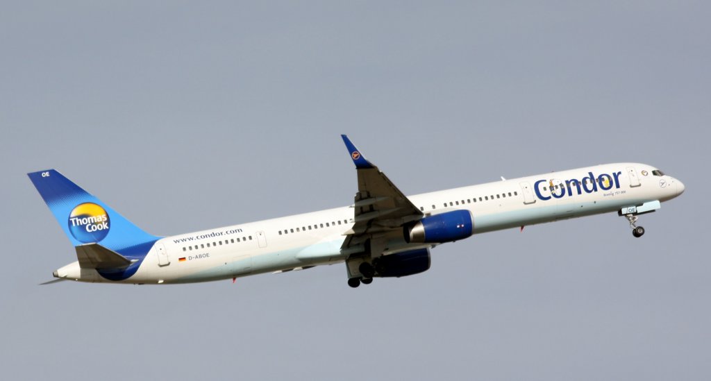 Condor, D-ABON, das ist sie : "Willi ~ Wir lieben Fliegen", Boeing 757-300 wl (Seitenleitwerk/Tail), 28.07.2011, DUS-EDDL, Düsseldorf, Germany