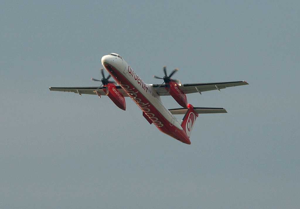Air Berlin De Havilland Canada DHC-8-402Q D-ABQB kurz nach dem Start in Berlin-Tegel am 17.09.2011