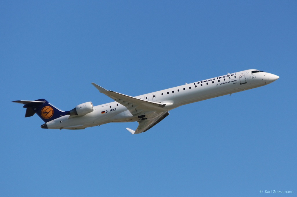 D-ACKF "Prenzlau" / LH CityLine / CRJ 900LR in MUC im Steigflug nach Ancona (AOI) 17.07.2013