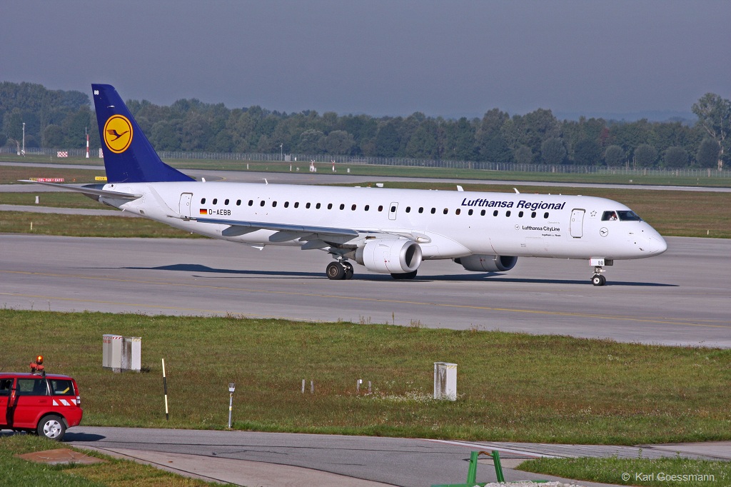 LH CityLine, D-AEBB  Ingelheim am Rhein , ERJ 195LR rollt in MUC zum Start nach Amsterdam (AMS) 18.09.2012