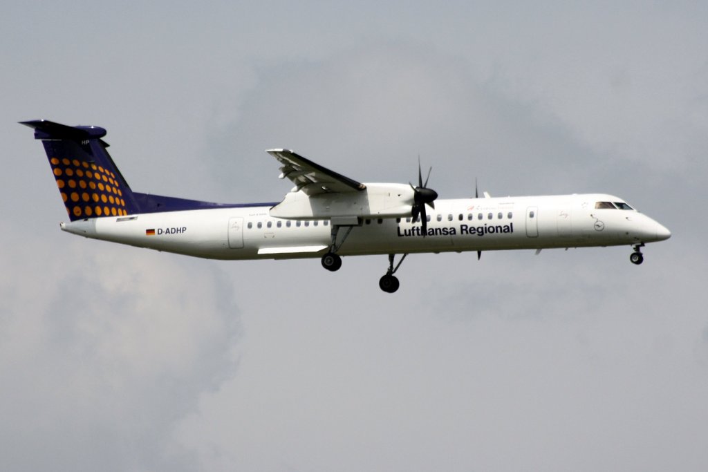 Eine De Havilland Canada DHC-8-402Q Dash 8 von Augsburg Airways mit der Kennung D-ADHA aufgenommen am 17.02.2010 auf dem Flughafen Stuttgart. Frank Tribull