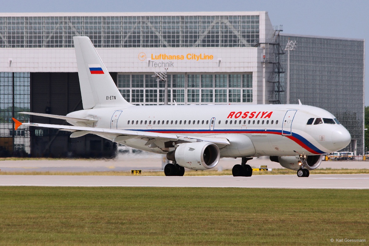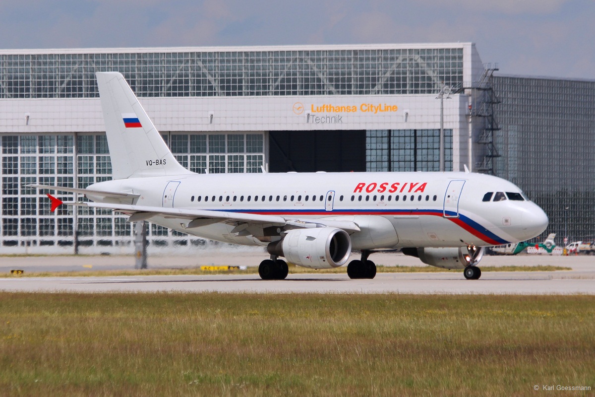 Rossiya mit Airbus A320-214 (VQ-BBM) wird gerade vom Gate auf die Position zum abfahren geschoben, 08.05.15 Flughafen Berlin-Schönefeld. Volker Stöckmann
