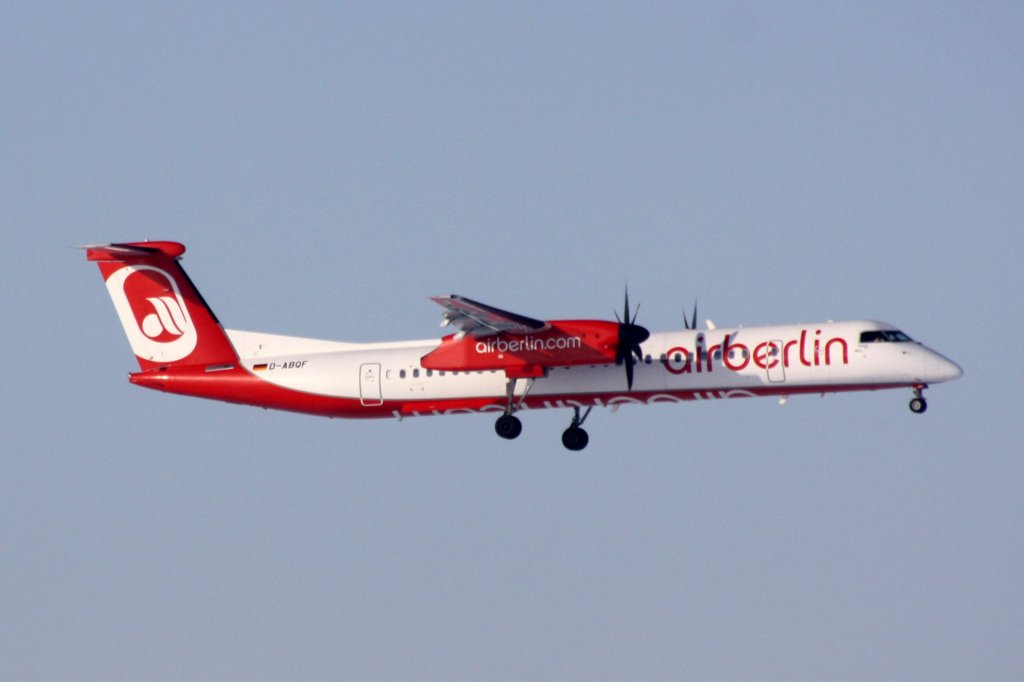 Air Berlin De Havilland Canada DHC-8-402Q D-ABQA bei der Ankunft in Berlin-Tegel am 18.09.2010