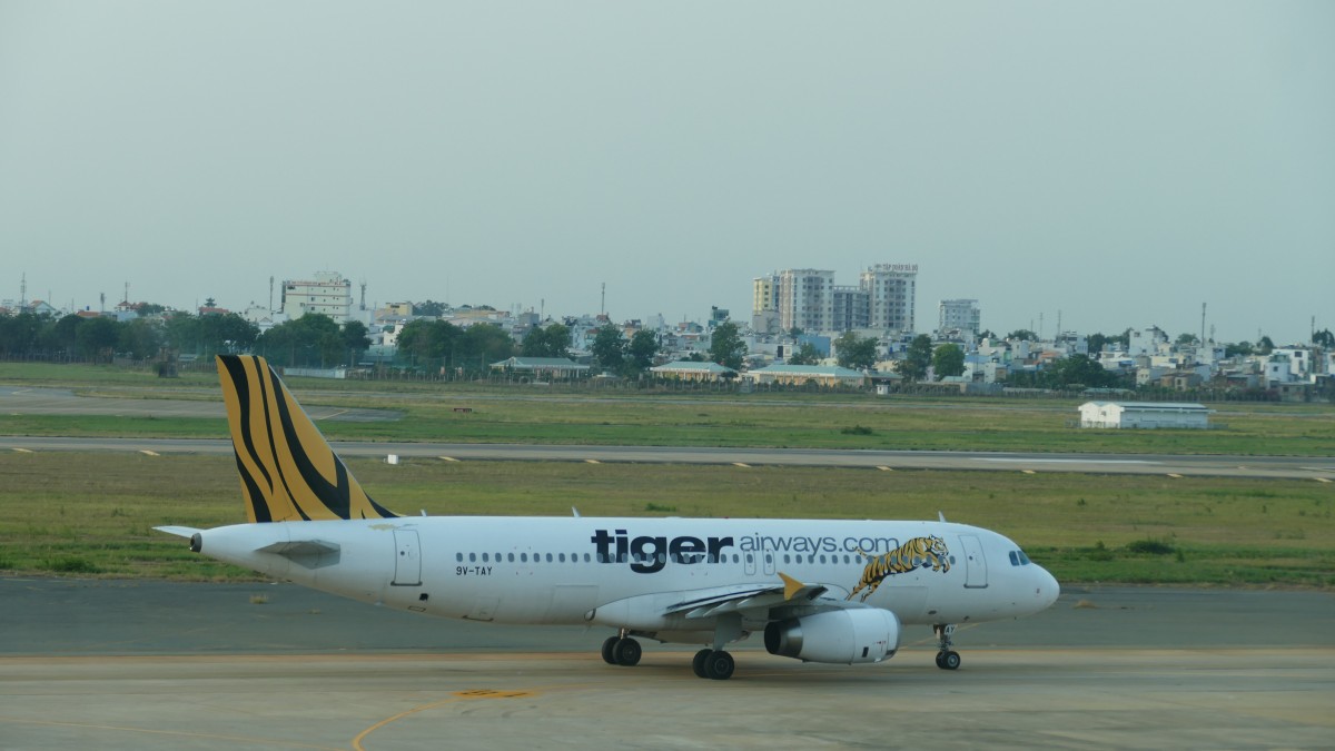 Tiger Airways mit der Kennung 9V-TAY am 18.4.2015 in Saigon. A320