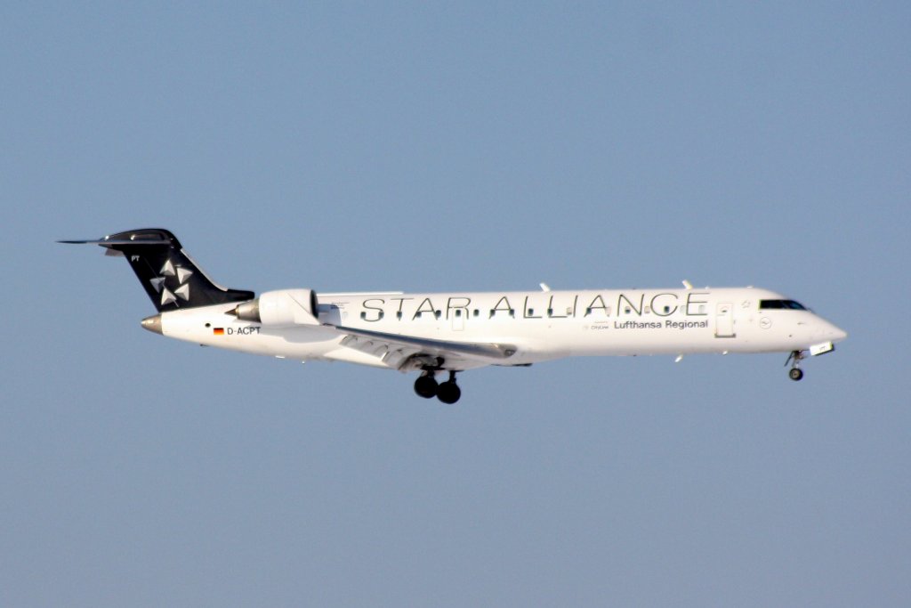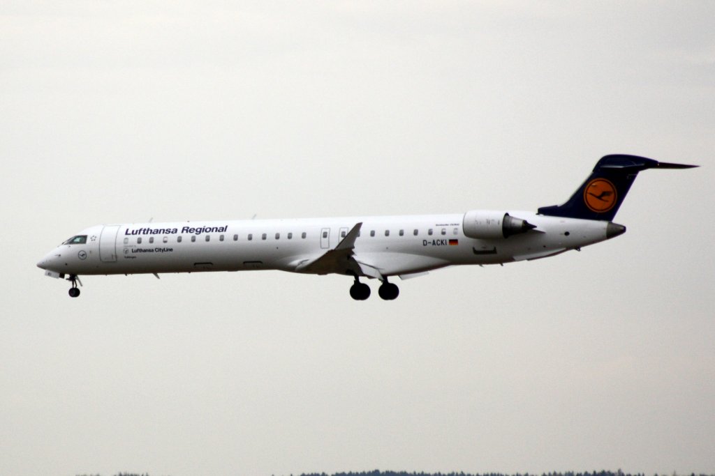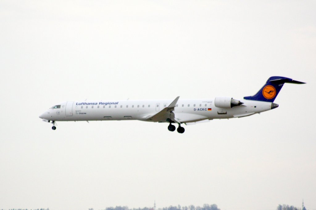 Lufthansa Regional CityLine, Bombardier CRJ-900, Kennung: D-ACKF nach der Landung auf dem Flughafen Dresden am 26.03.2010