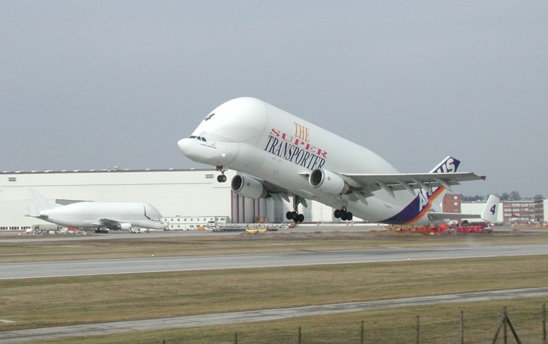 März 2003 Hamburg-Finkenwerder. Eine Beluga hebt vom Airbus Werksflughafen ab.