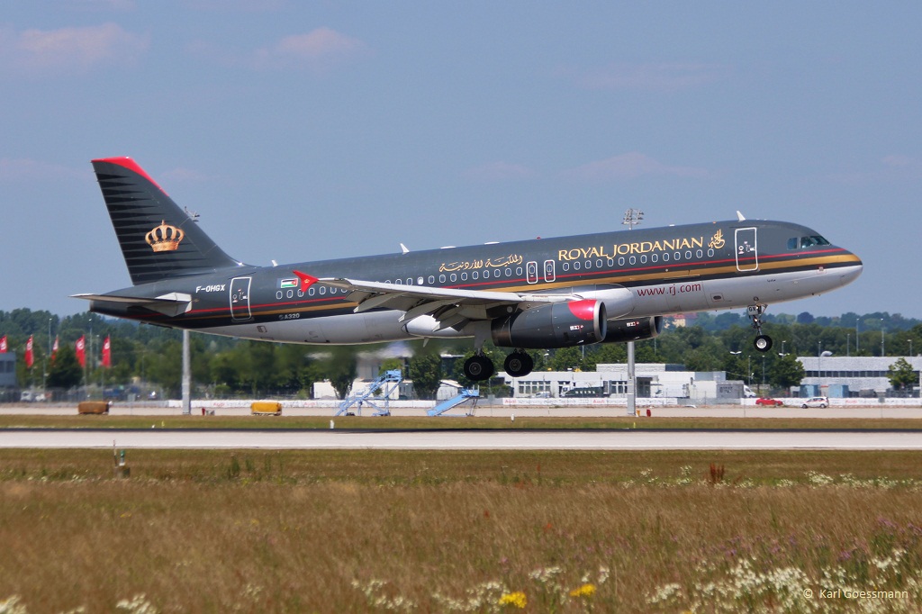 Royal Jordanian, F-OHGX  Madaba , A320-232 bei der Landung in MUC aus Amman (AMM) 17.07.2013