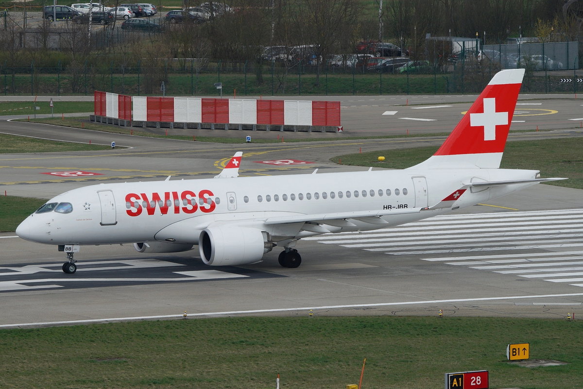 Swiss Bombardier CSeries CS100 (BD-500-1A10) HB-JBB,"Canton de Genève", cn(MSN): 50011, Zürich-Kloten Airport, 20.03.2017.