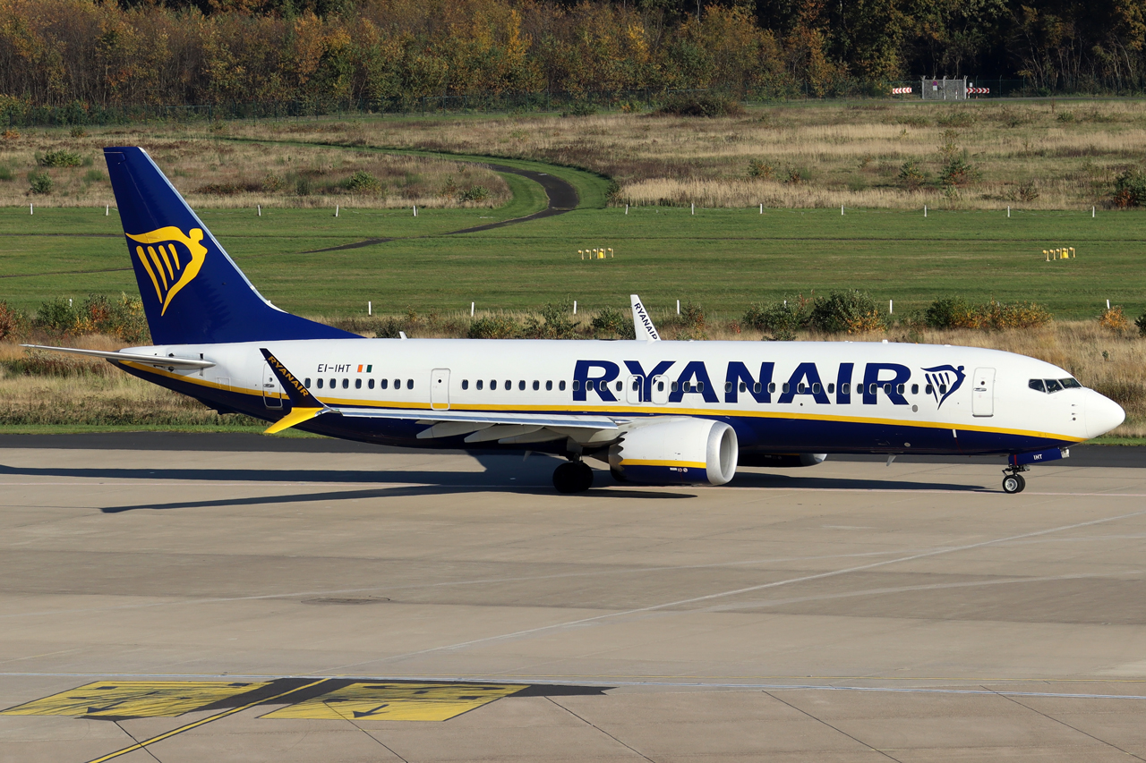 Ryanair Boeing 737-8-200 MAX EI-IHT rollt zum Start in Köln 3.11.2024