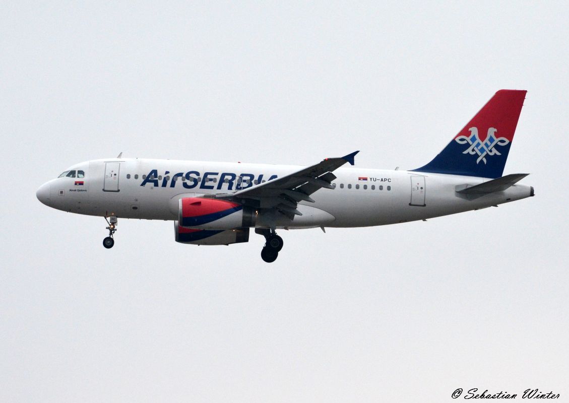 Air Serbia A 319-132 YU-APE bei der Landung in Berlin-Tegel am 18.01.2015