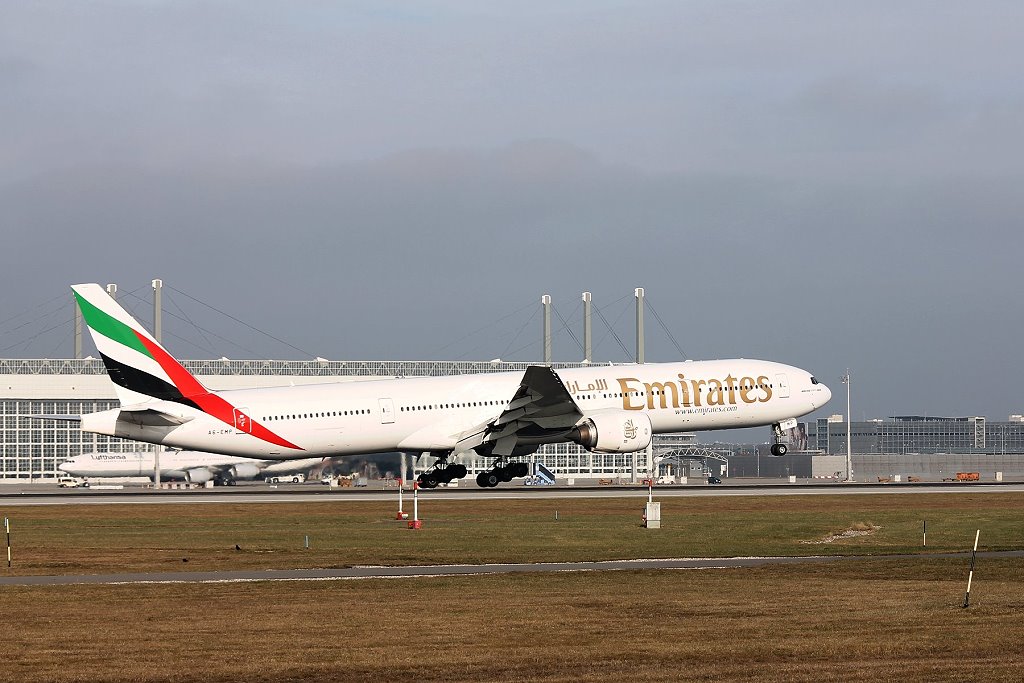 Boeing 777 von Emirates am 20.November 2011 bei der Landung am Airport München.