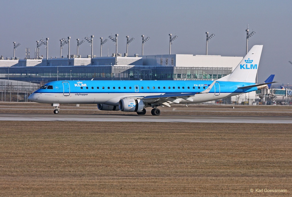 KLM Cityhopper, PH-EZF, ERJ 190STD bei der Landung in MUC aus Amsterdam (AMS) 16.03.2013