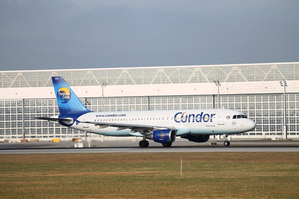 Airbus A320 von Condor bei Start vom Münchner Airport am 20.November 2011.