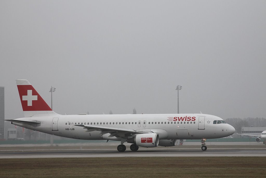 Airbus A320 von Swiss beim Start vom Münchner Airport am 20.November 2011.