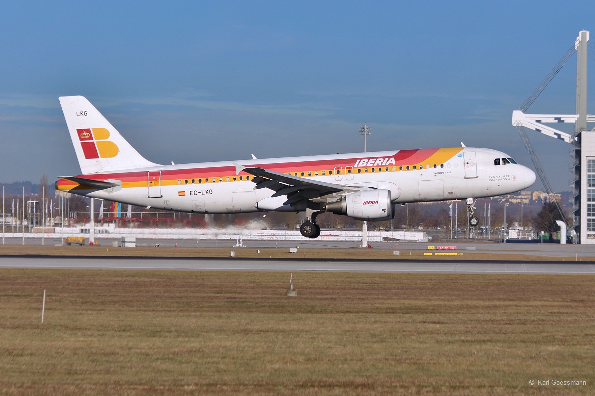 EC-LKG "Santiago de Compostela" / Iberia / A320-214 in MUC bei der Landung aus Madrid (MAD) 28.12.2013