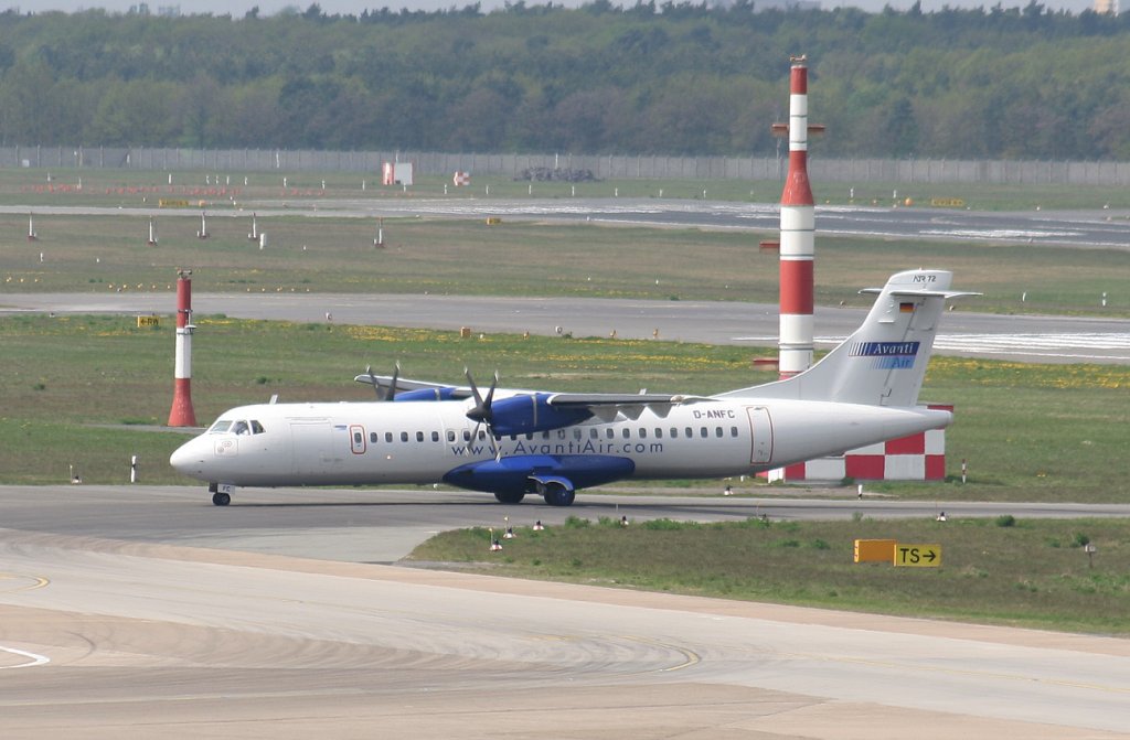Das Flugzeug ist eine Aerospatiale ATR 42-500 der Avanti Air