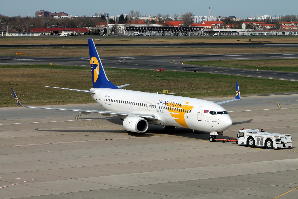 EI-CXV MIAT - Mongolian Airlines Boeing 737-8CX(WL)   zum gate in Tegel am 29.04.2015