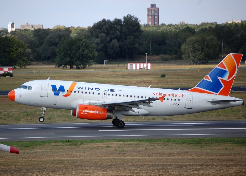 Windjet A 319-132 EI-EDM bei der Ankunft auf dem Flughafen Berlin-Tegel am 26.07.2009