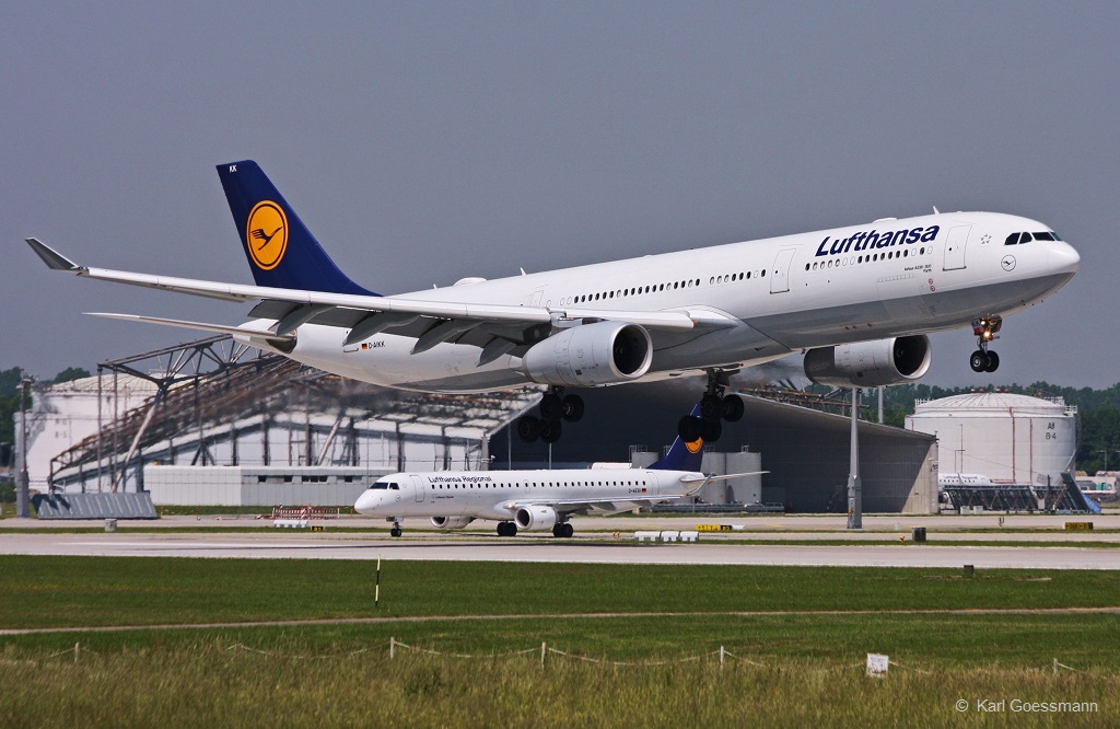 Lufthansa, D-AIKK "Fürth", A330-343X bei der Landung in MUC aus Dubai (DXB) 18.06.2013