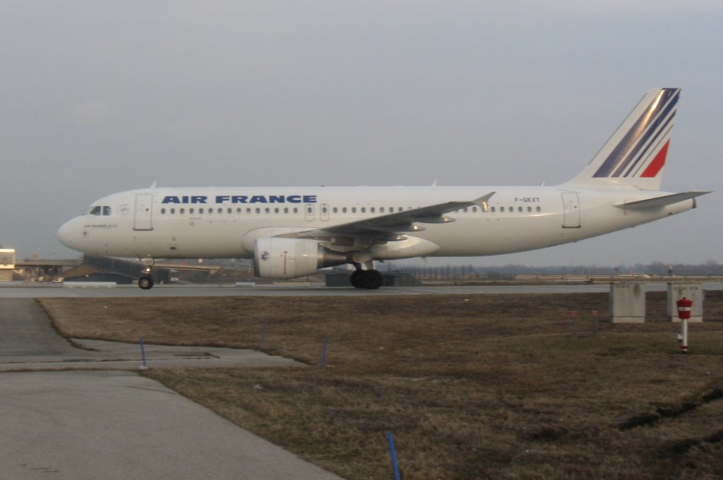 Air France-AIrbus A320 mit der Kennung F-GKXU auf dem Weg zur Startbahn in Frankfurt am Main (06.02.2010)